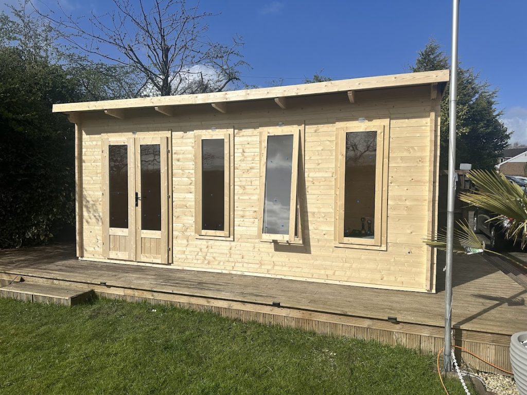 Then the Terminator arrived. A Dunster House Terminator wooden summer house. My new gym, and maybe my office.